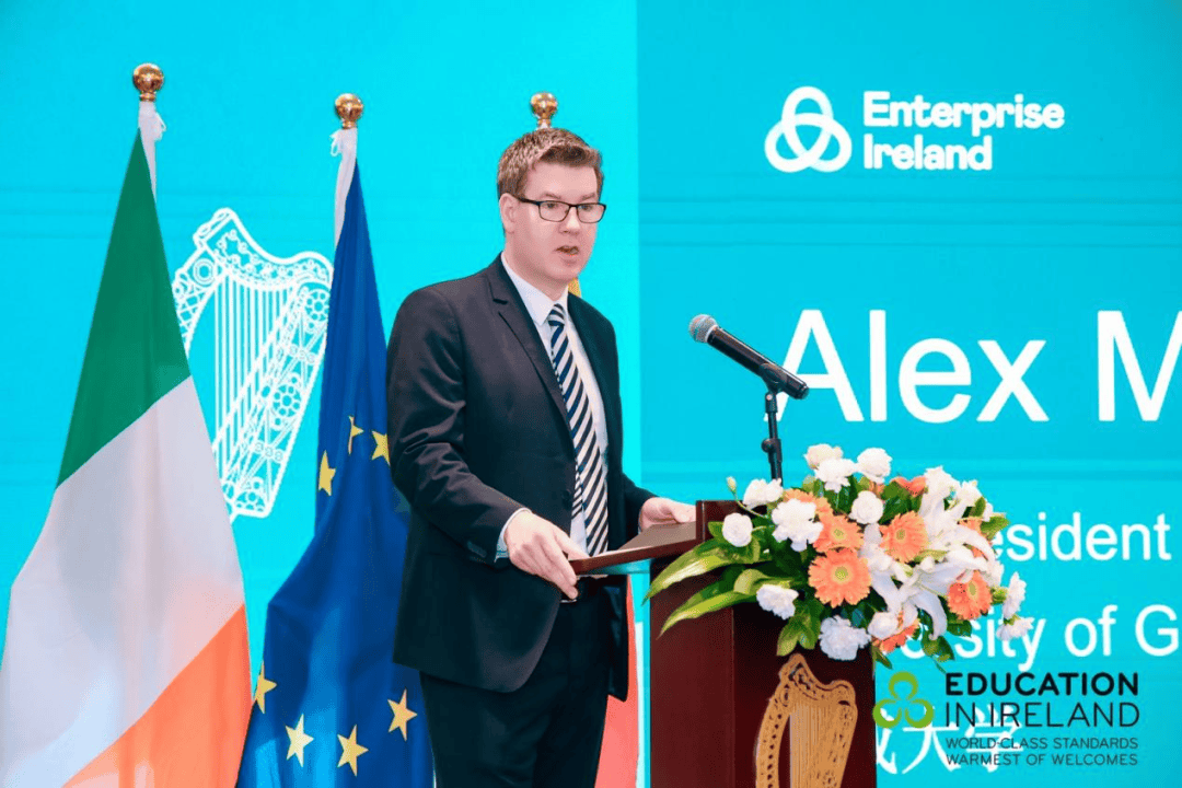 现场,格里菲斯学院、国立科克大学、梅努斯大学、高威大学等13所高校的校长、传授等做为代表别离引见了各自高校的合做签约项目及主要合做。