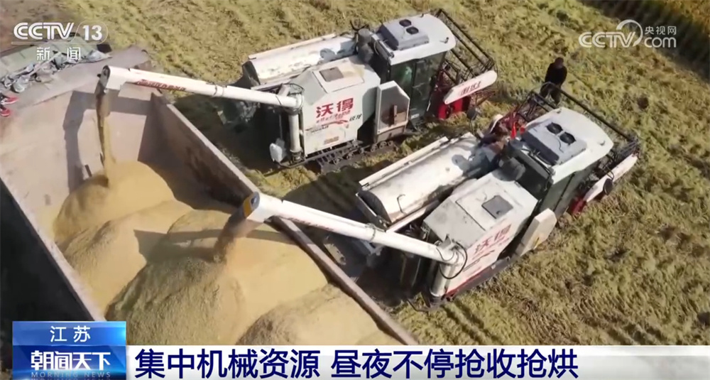 自秋粮抢收工做开展以来,朔州市农业部分组织534名农技人员、600多名专家和科技特派员,投入各类收割机4381台。正在江苏北部的徐州、连云港等地,9月中下旬以来持续阴雨气候,大豆和部门水稻进入收成期。面临当前气候晦气要素,多地打响抢收秋粮“和”,集结机械设备,开脚马力抢收。正在徐州市宝穴区伊庄镇的大豆玉米带状复合种植里,玉米和大豆划一陈列,多台收割机正正在地里来回穿越,切割、脱粒等工序趁热打铁。